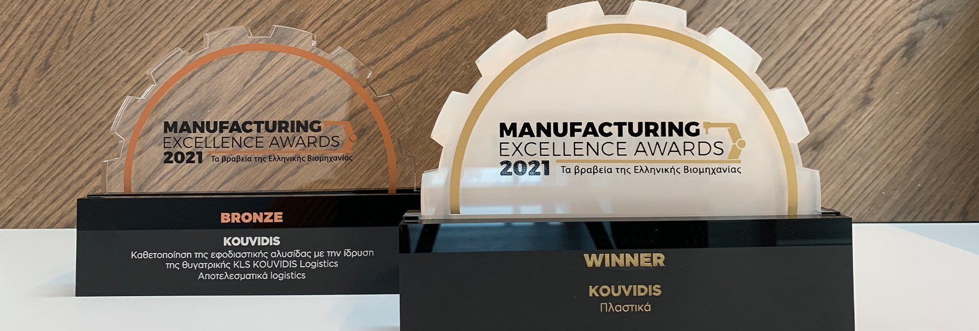 Νιώθουμε ιδιαίτερη τιμή για την πολύ μεγάλη αναγνώριση, στον πρόσφατο διαγωνισμό Manufacturing Awards 2021, με την ανάδειξη μας ως WINNERS στην κατηγορία «Πλαστικά», διακρίνοντας την εταιρία μας ανάμεσα στις κορυφαίες μεταποιητικές βιομηχανίες στην Ελλάδα. Επίσης, το χάλκινο βραβείο στην κατηγορία «Αποτελεσματικά Logistics» αντικατοπτρίζει τις καθημερινές μας προσπάθειες για ασφαλή, συνεπή και άμεση παράδοση των προϊόντων μας.